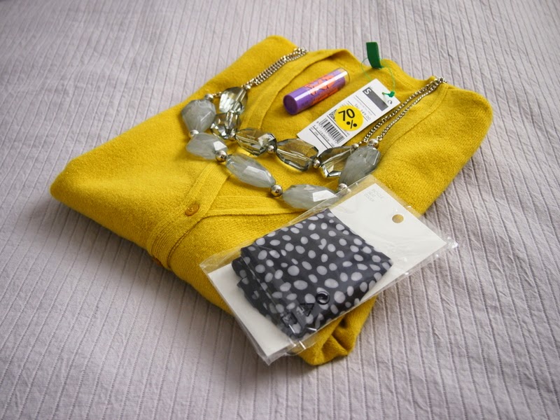 Löysin Benettonilta aivan ihanan villatakin 70 %:n alennuksella, joten hintaa jäi noin 12 euroa. Kysessä siis 100-prosenttista villaa, joten aika superlöytö. H&M:stä löysin ihanan vaaleansinisen statement-korun ja tällä kertaa päätin sen myös ostaa, enkä ajatella, että Suomesta tämän saisi varmaan euron halvemmalla. Kerran olen tämän virheen tehnyt yhden huivin kanssa, ja sitten sitä etsittiin ympäri Helsinkiä. Ei siis paljon säästö tässä asiassa kannattanut. Hintaa tällä korulla oli Ruotsissa 129 kruunua eli noin 14,5 euroa. H&M:stä löysin myös suojuksen pyörän satulaan ja Maybellinen Baby Lips -huulirasvan. Huulirasva oli tarjouksessa 29,5 kruunua, joten se päätyi testiin, vaikka olin ensin ajatellut, etten aio olla blogimarkkinoinin uhri 🙂 Huulirasva on makuuni vähän liian huulipunamainen, joten mitään suosikkia siitä ei tullut, mutta enköhän tämän kuitenkin loppuun käytä.